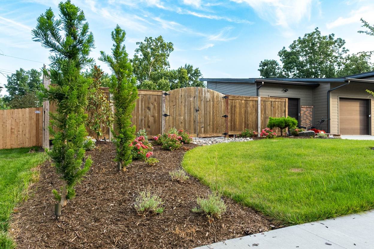 Instead of installing a traditional fence, consider a row of columnar evergreens like ‘Emerald Green’ arborvitae. These can grow 10-15 feet tall or more and stay compact, offering year-round privacy and greenery.